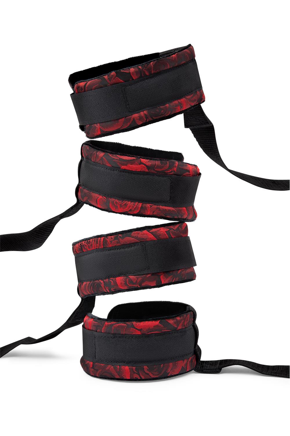 Til spanning en elegantie naar een hoger level met deze vierdelige bondage-set. De gewatteerde boeien voelen zacht aan en zijn eenvoudig verstelbaar voor een zekere, comfortabele fit. De subtiele rozenprint voegt een vleugje luxe toe terwijl jij de regie voert over tempo, positie en overgave.
