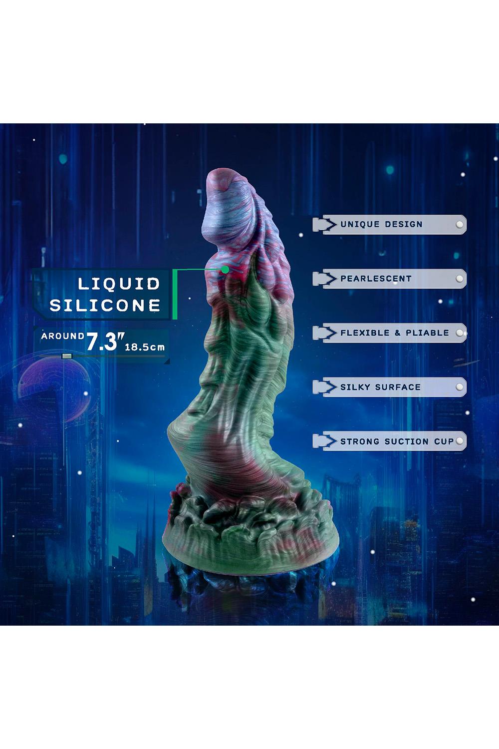 Deze monster dildo combineert een uniek design met een sterke zuignap voor stabiel, handsfree spel. De Liquid Silicone voelt zijdezacht aan, buigt soepel mee en heeft een luxueuze parelmoer-shimmer die elke beweging extra spannend maakt.